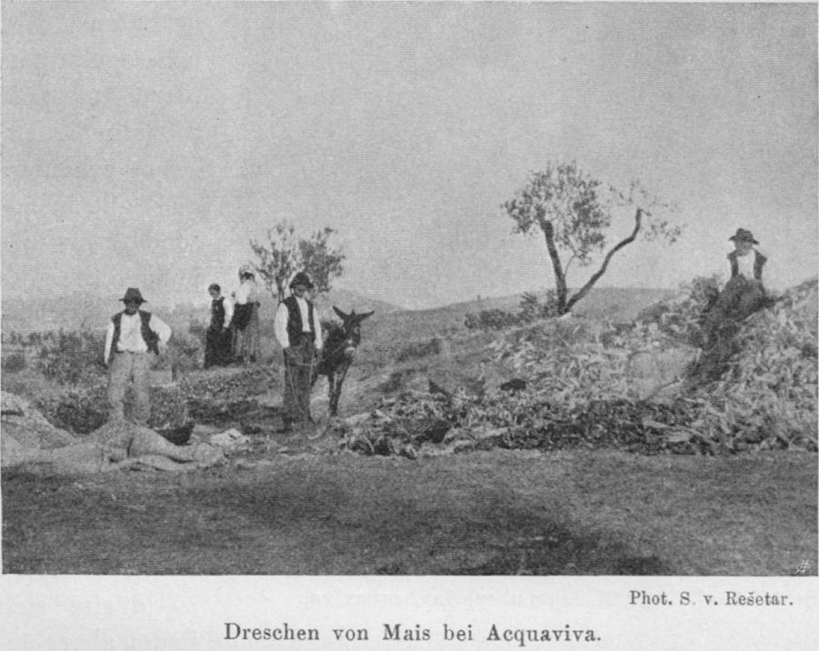 Dreschen von Mais bei Acquaviva. Phot. S. v. Rešetar.