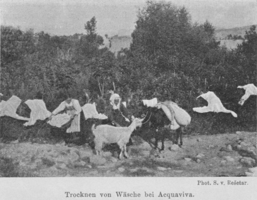 Trocknen von Wäsche bei Acquaviva. Phot. S. v. Rešetar.