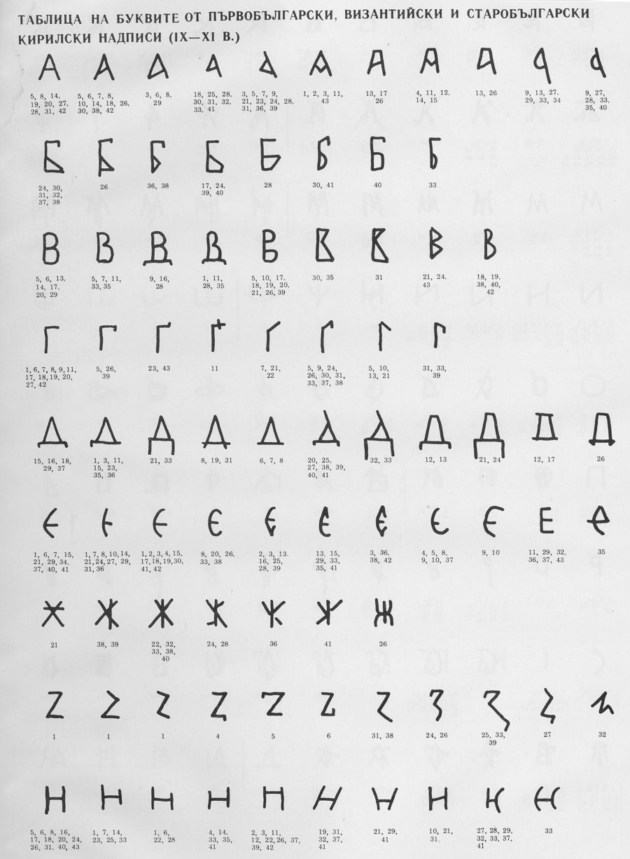 · Симонов P. А. Византийская нумерация в эпиграфике Первого Болгарского царства и начало славянской письменности. — Советская археология, 1973, 1, с. 71—82;