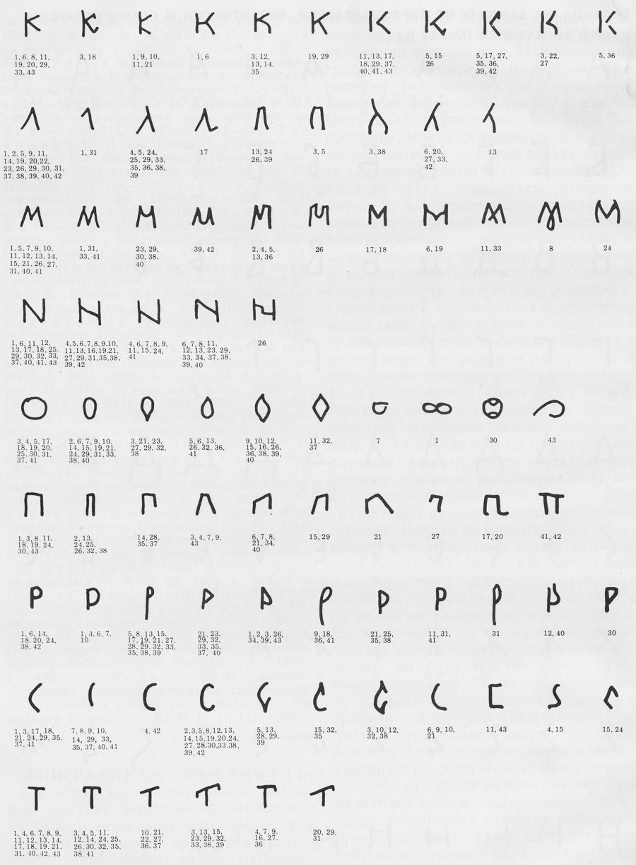 · Штефаник В. Първобитното словенско писмо и најстарата глаголска епиграфика. — В: Словенска писменост. Охрид, 1966, с. 13—30;