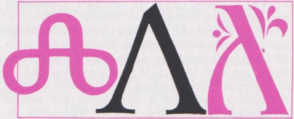 с по-дълги десни линии, излизащи над левите. В някои паметници (характерни са случаите в Охридския апостол) има особено начертание на л, в което дясната линия завива вляво и образува стряха над буквата (срв. също д в Охридския апостол).