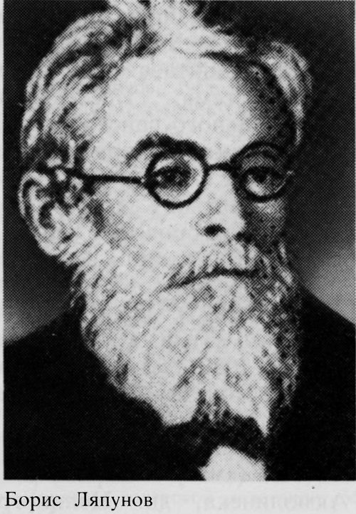 (37). ЛЯПУНОВ, Борис Михайлович (25.VII./6.VIII.1862 — 22.II.1943) — руски езиковед-славист и педагог. Роден в с. Болобоново, Курмишки уезд, Симбирска губ. (дн. Пилнински район, Горковска област, Русия). От 1874 учи в Нижегородската гимназия, а от 1878 — в Пета московска гимназия. Завършва Историко-филологическия фак. на Петербургския унив. (1885). От 1887 готви професура при В. Ягич, А. А. Потебня и М. Дринов. Частен доц. и преподавател по слав. езици и сравнителна фонетика в Харковския унив. (1892—1899). Защитава магистърска дисертация на тема: „Исследование о языке Синодального списка I-ой Новгородской летописи. Очерк из истории иррациональных гласных в русском языке“ (1899). Ръководи Катедрата по слав. филология в Новгородския унив. (1900). Извънреден (1902), по-късно редовен проф. Член-кор. на Петербургската АН (1907), акад. (1923). Проф. в Одеския унив. (1903—1923) и в Ленинградския унив. (1924—1929), където преподава слав. езици. Почетен д-р на Киевския унив. Член на Полската АН (1930), чуждестранен член на БАН (1932), на Чешката АН (1934). Умира в с. Боровое, Акмолинска, дн. Целиноградска област, Казахстан.