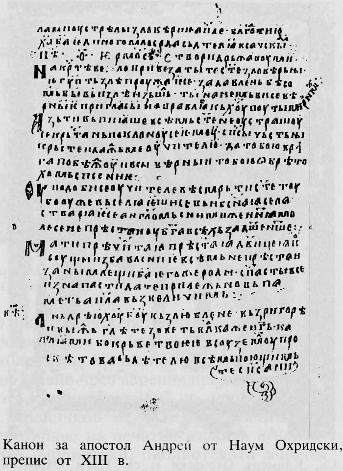 В старобълг. и среднобълг. кирилско писмо свързващата линия на н е наклонена. До средата на XIII в. буквата е