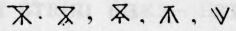 ). Долната част на буквата е права чертица, често представена като продължение от левия щрих на горната половина (сх.