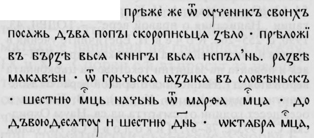 ати за съпьсати (Супр. сб. 54.16); в Сав. кн. кръстовидната буква е употребена само в припискат на л. 51а (по изд. на В. Н. Шчепкин) — поп̑ сава
