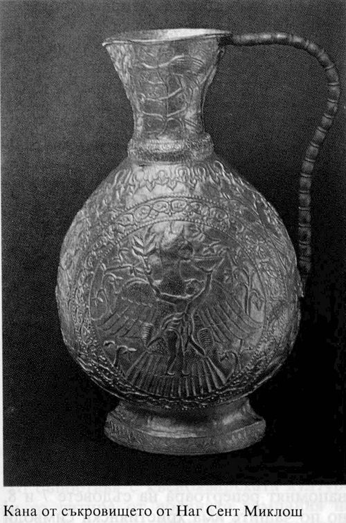 (82). СЪКРОВИЩЕ ОТ НАГ СЕНТ МИКЛОШ — 23 съда, намерени през 1799 в с. Наг Сент Миклош (дн. с. Сън Никулау Маре, Банат, Румъния) от селянина Неру Вуин. Съхранява се в Музея за история на изкуството във Виена. Съдовете са изработени от злато 18—22 карата (само рогът за пиене е от злато 12 карата). Общото им тегло е 9924.98 гр. При изследванията се спазва номерацията, дадена от първите проучватели. Съкровището съдържа: седем кани (1—7), овален поднос (8), четири чаши за окачване на колан (9, 10, 20, 21), две конусовидни чаши (11, 12), две чаши със столче (22, 23),