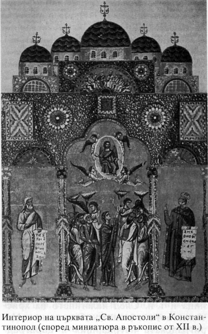 Интериор на църквата „Св. Апостоли“ в Константинопол (според миниатюра в ръкопис от XII в.)