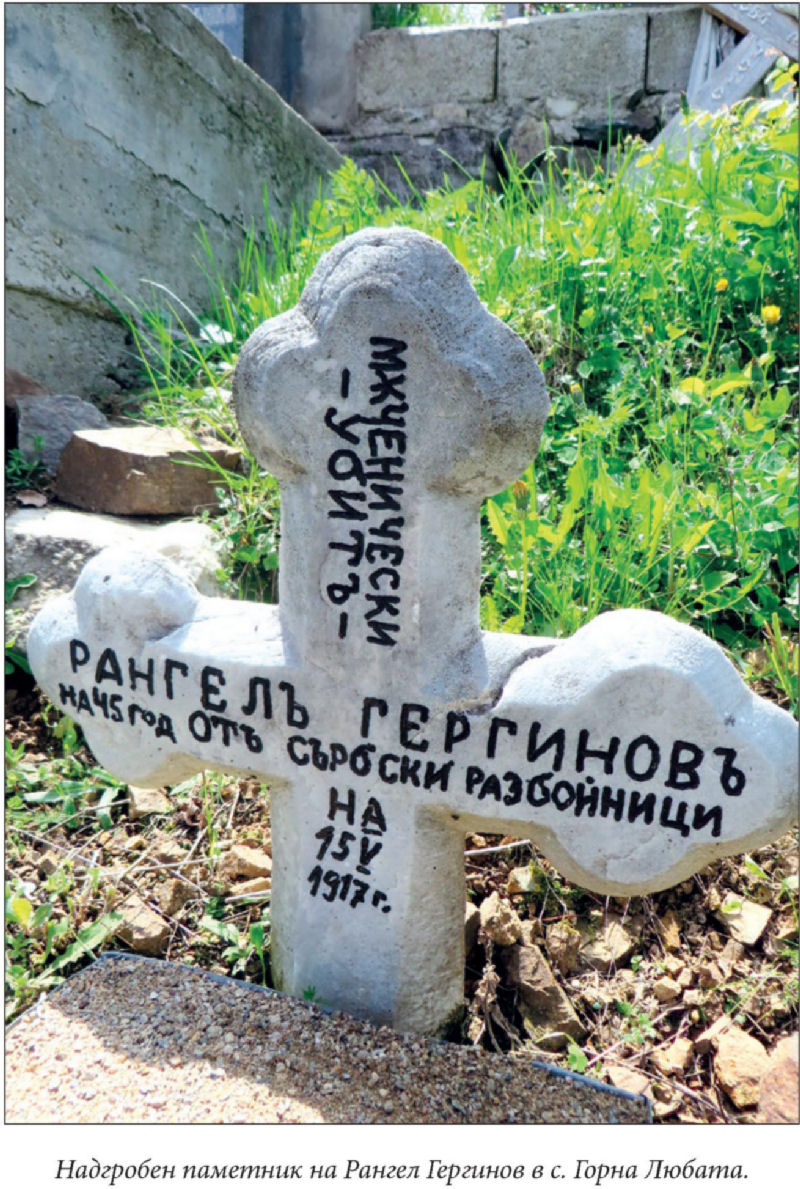 Надгробен паметник на Рангел Гергинов в с. Горна Любата.