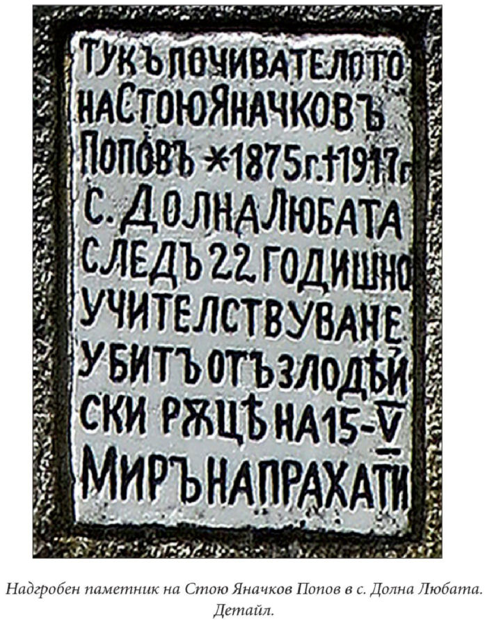 Надгробен паметник на Стою Яначков Попов в с. Долна Любата. Детайл.