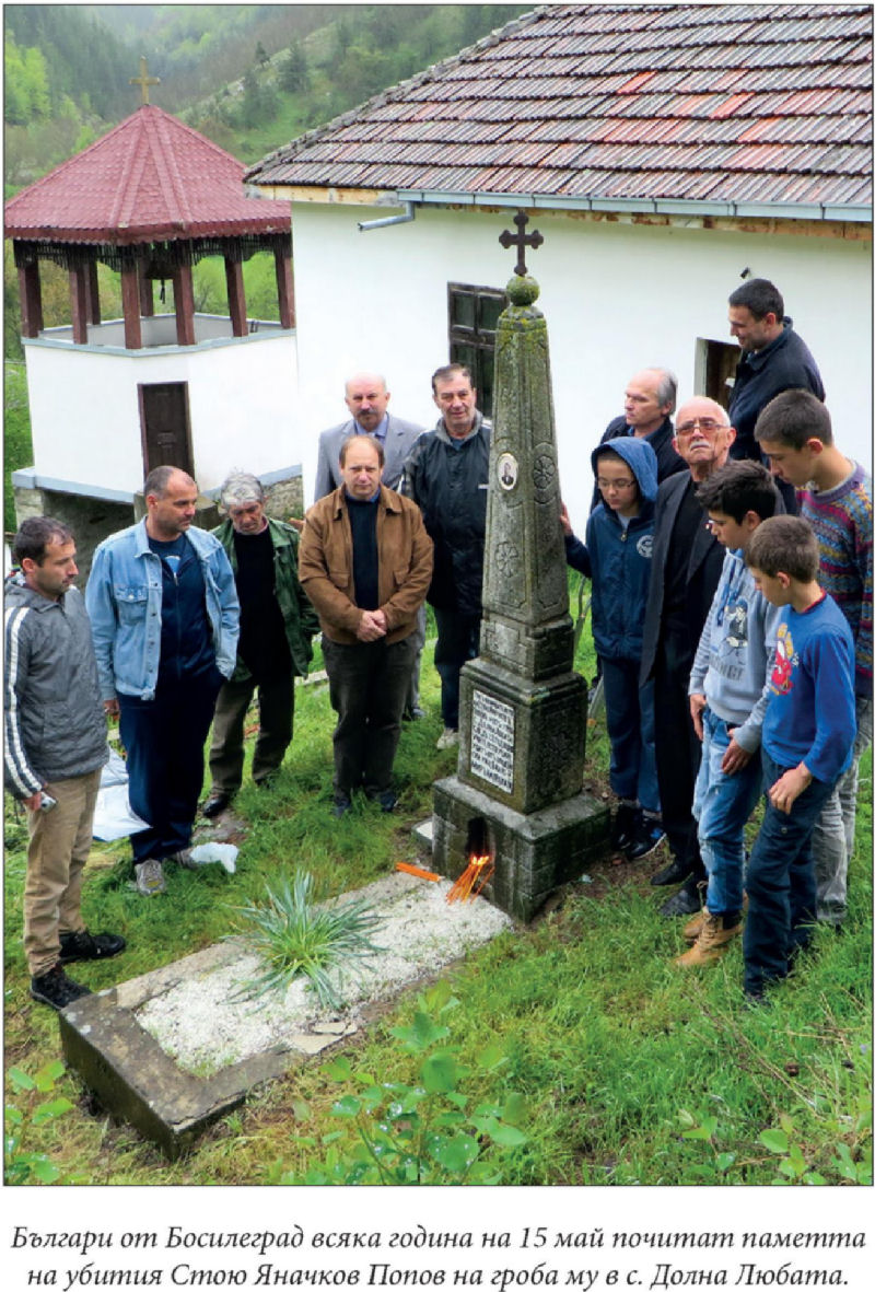 Българи от Босилеград всяка година на 15 май почитат паметта на убития Стою Яначков Попов на гроба му в с. Долна Любата.