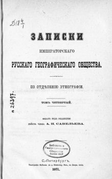 Изданъ подъ редакціею дъйств. члена А. И. Савельева. «Записки Императорскаго Русскаго Географическаго Общества по отдѣленію этнографіи», С.-Петербургъ, 1871, IV т. Типографія Майкова въ д. Министер. Фин., на Дворц. площ.
