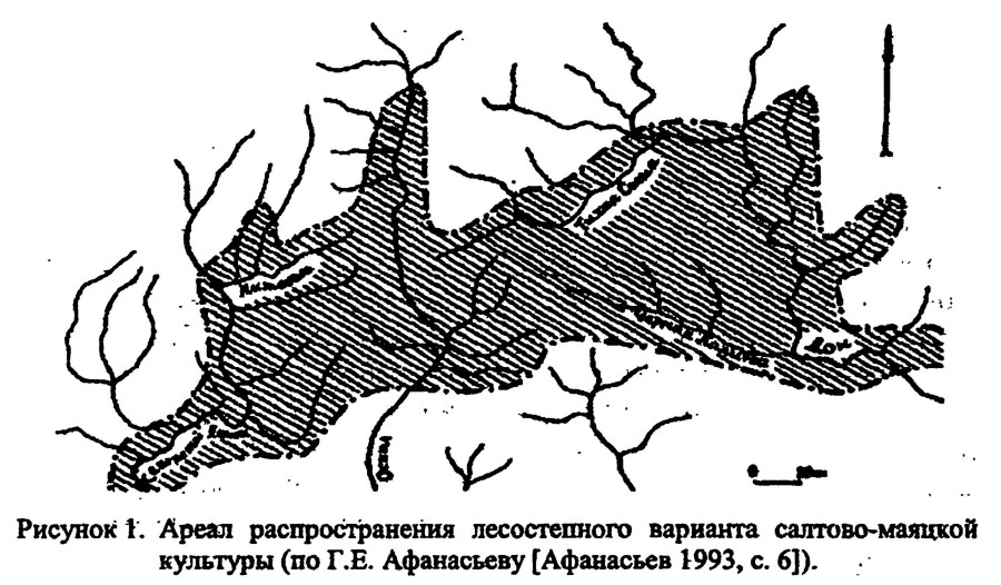 Рисунок 1. Ареал распространения лесостепного варианта салтово-маяцкой культуры (по Г.Е. Афанасьеву [Афанасьев 1993, с. 6])