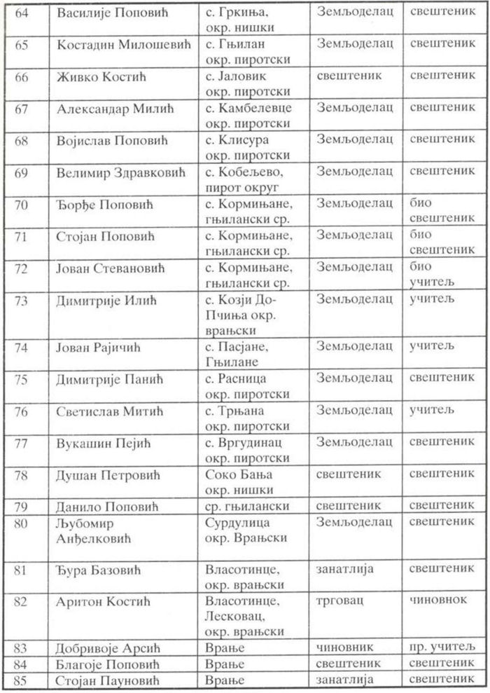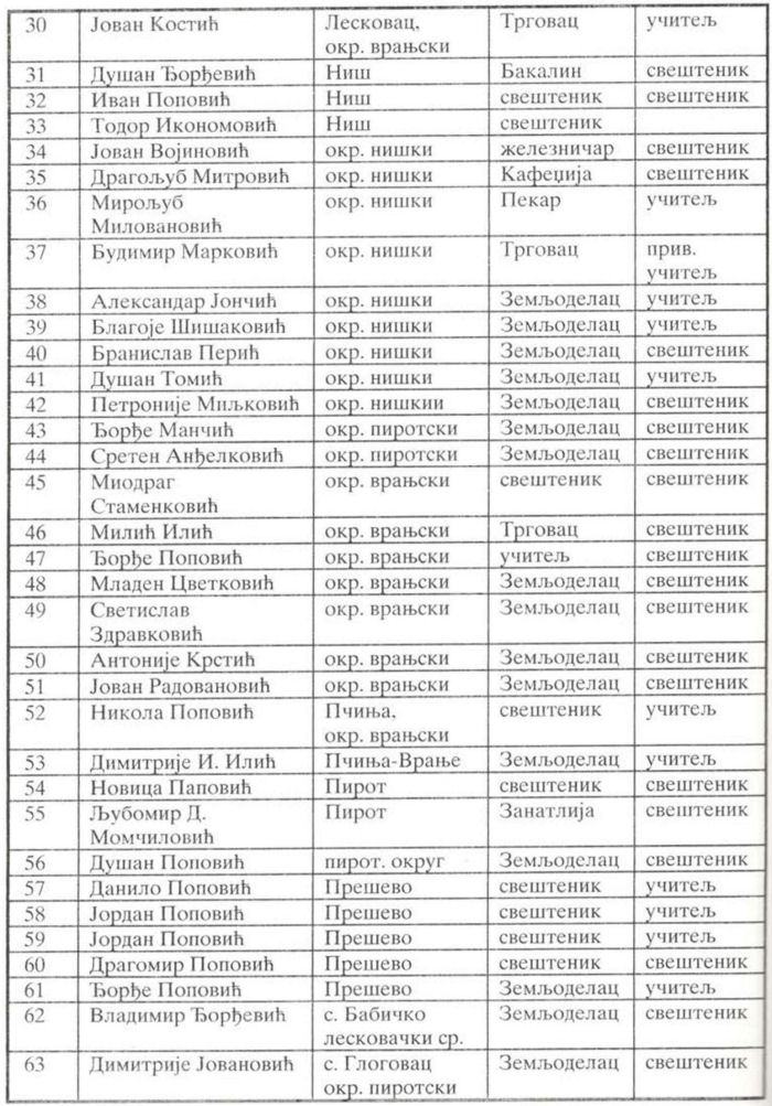 [[ Јордан Т. Поповић, Сима Игумановић, Стојан Стевановић, Стојадин Станковић, Војислав Поповић, Живко Поповић, Тодор Поповић, Коста Стевановић, Василије Живковић, Данило Катанић, Трајко Илић, Ђорђе Катанић, Лазар Васић, Апостол Филиповић, Петар Јовановић, Михаило Јовановић, Зарија Ђорић, Арсеније Поповић, Павле Даниловић, Никола Серафимовић, Ђорђе Васић, Ђорђе Поповић, Трајко Ковачевић, Захарије Ристић, Живојин Костић, Драгутин Јакашевић, Алекса Поповић, Милутин Паповић, Димитрије Костић, ЈованКостић, Душан Ђорђевић, Иван Поповић, Тодор Икономовић, Јован Војиновић, Драгољуб Митровић, Мирољуб Миловановић, Будимир Марковић, Александар Јончић, Благоје Шишаковић, Бранислав Перић, Душан Томић, Петроније Миљковић, Ђорђе Манчић, Сретен Анђелковић, Миодраг Стаменковић, Милић Илић, Ђорђе Поповић, Младен Цветковић, Светислав Здравковић, Антоније Крстић, Јован Радовановић, Никола Поповић, Димитрије И. Илић, Новица Паповић, Љубомир Д. Момчиловић, Душан Поповић, Данило Поповић, Јордан Поповић, Јордан Поповић, Драгомир Поповић, Ђорђе Поповић, Владимир Ђорђевић, Димитрије Јовановић, Василије Поповић, Костадин Милошевић, Живко Костић, Александар Милић, Војислав Поповић, Велимир Здравковић, Ђорђе Поповић, Стојан Поповић, Јован Стевановић, Димитрије Илић, Јован Рајичић, Димитрије Панић, Светислав Митић, Вукашин Пејић, Душан Петровић, Данило Поповић, Љубомир Анђелковић, Ђура Базовић, Аритон Костић, Добривоје Арсић, Благоје Поповић, Стојан Пауновић ]]