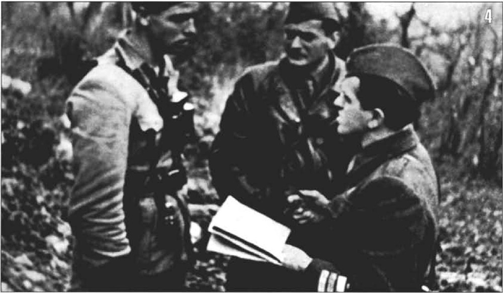 4, 5. Действия партизанской армии. На фото 4 — командующий войсками Народно-освободительной армии Словении Франц Розман Стане и политкомиссар главного штаба НОА Словении Борис Кидрич отдают приказ командиру одной из бригад. На снимке 5 — командир 1-й бригады НОА Словении Народный герой Стане Семич Даки дает указания артиллеристам. Югославия, 1943-1944 годы (АВЛ).