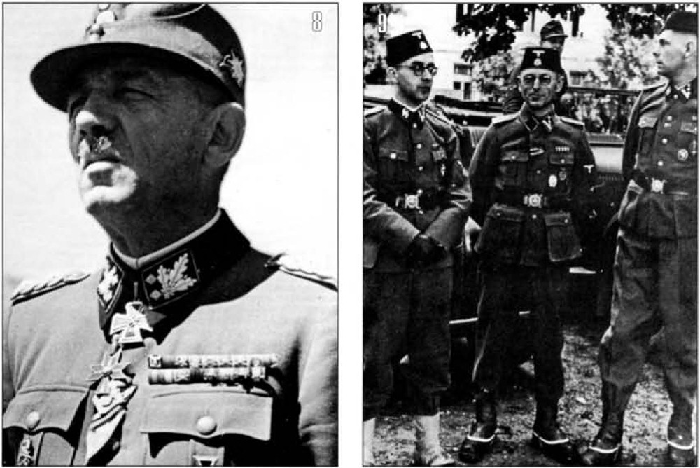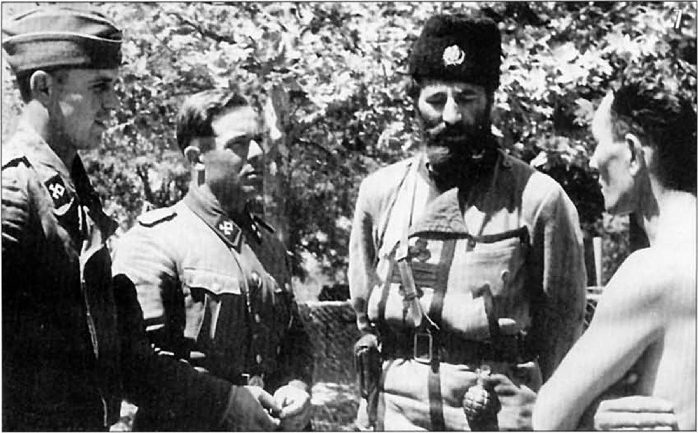 6, 7. Сербские националисты - четники, первоначально ставили своей целью борьбу с иностранной оккупацией Югославии. Но постепенно, поставив приоритет борьбы с коммунистическим партизанским движением Тито, некоторые командиры четников скатились до банального сотрудничества с немцами. На снимках командиры четников рядом с офицерами вермахта (снимок 6) и командирами 7-й горнострелковой дивизии СС. 1943-1944 годы (АВЛ).