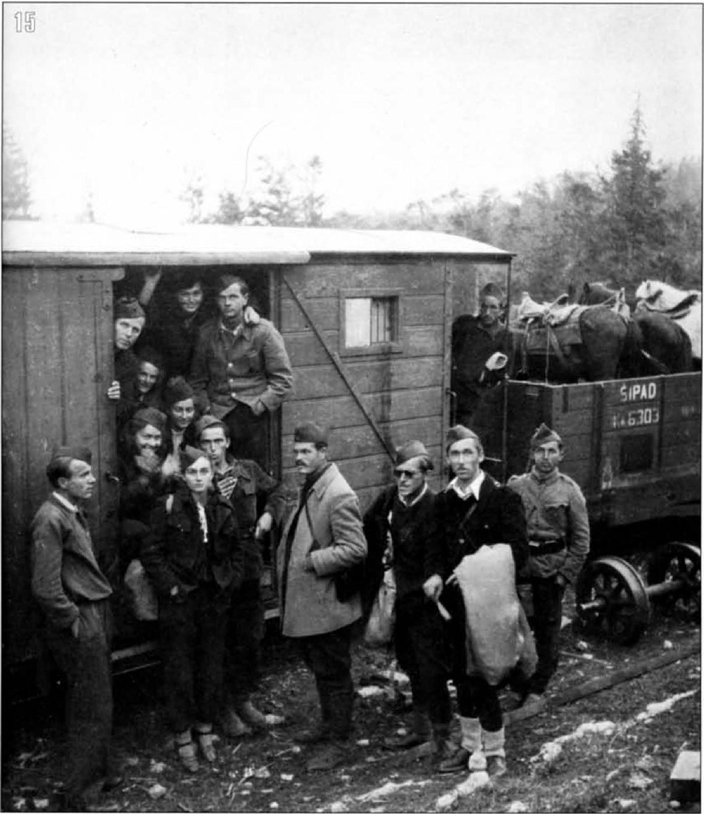 15. By 1944, the partisan army had exercised control of a large part of the country, including the railroad lines. The picture shows a partisan formation redeploying to another area. Yugoslavia, 1944.