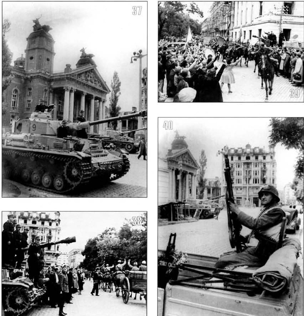 37-40. Bulgarian troops on the streets of Sofia. Picture 37 shows a German-made Pz.Kpfw.IV medium tank (tactical number "9") operated by the Bulgarian Army. 97 such tanks (versions G and H) were supplied by Germany between September 1943 and February 1944. September 1944.