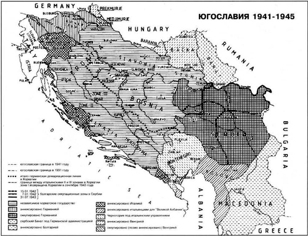 Территориальное деление и зоны оккупации Югославии в 1941-1945 годах.