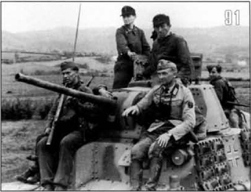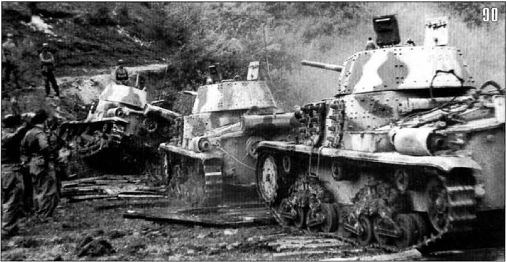 90-92. Несмотря на поражение в Сербии, германские войска и их союзники продолжали сопротивление. На снимках танки итальянского производства М15/42 из состава бронероты 1-й казачьей кавдивизии вермахта совершают передислокацию в западную часть Югославии. Октябрь-ноябрь 1944 года (АВЛ).