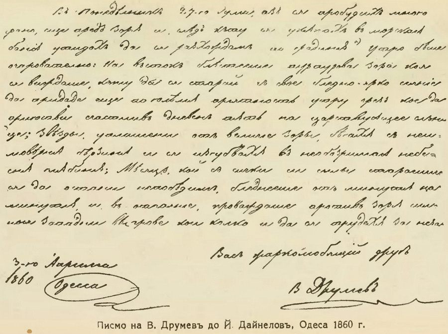 29. Писмо на В. Друмевъ до Й. Дайнеловъ, Одеса 1860 г.