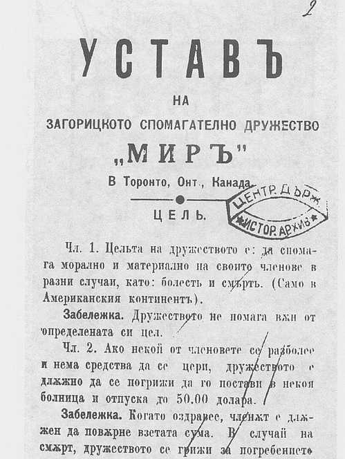 of Zagorichani Charity Organization "Mir", founded on 15.12.1918 in
