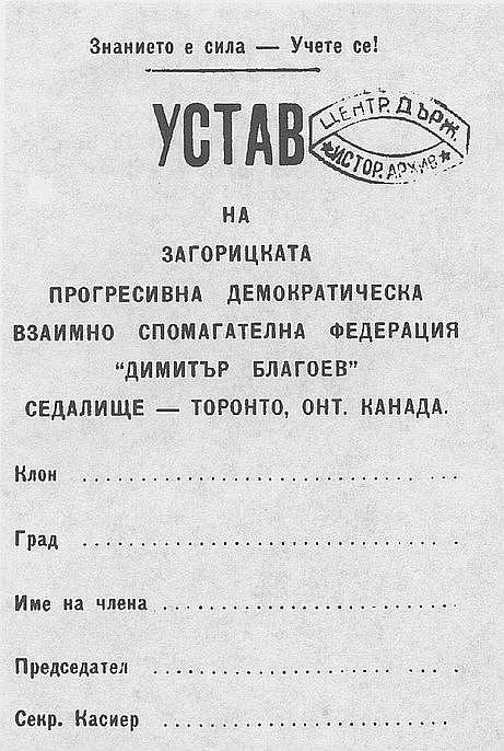democratic mutual aid federation "Dimitar Blagoev", Toronto