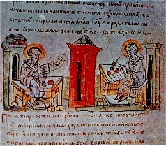 Миниатюра в "Учителско евангелие" на Константин Преславски, копие от XII в. |
