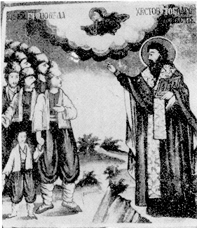 Кирил проповядва пред народа. Араповски манастир, 1864 | Изображение на Климент Охридски