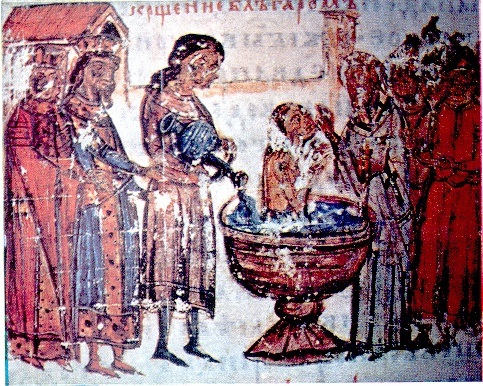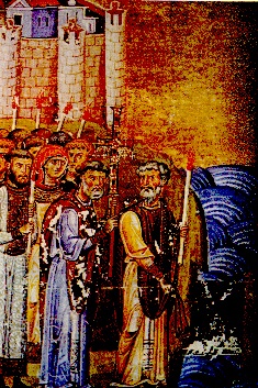Миниатюра във Ватиканския препис на Манасиевата хроника от XIV в. |