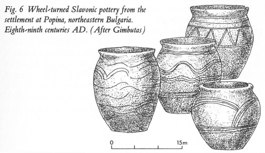 Fig. 6 Wheel-turned Slavonic pottery from the settlement at Popina, northeastern Bulgaria. Eighth-ninth centuries AD. (After Gimbutas)