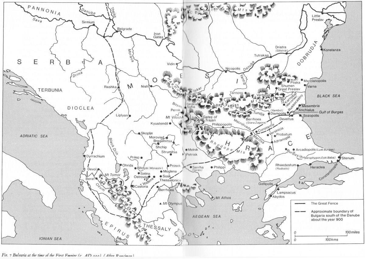 Fig. 7 Bulgaria at the time of the First Empire (c. AD 900). (After Runciman)