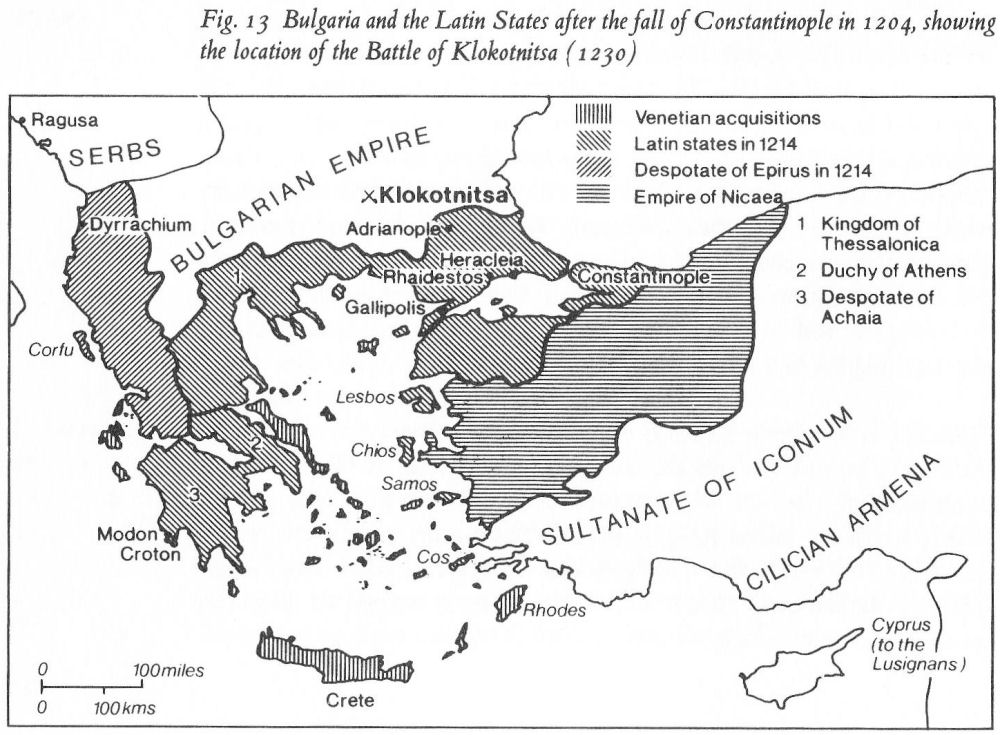 Fig. 13 Bulgaria and the Latin States after the fall of Constantinople in 1204, showing the location of the Battle of Klokotnitsa (1230)