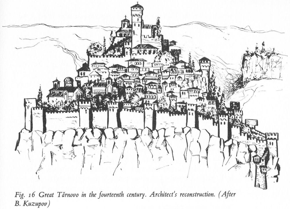 Fig. 16 Great Tarnovo in the fourteenth century. Architect’s reconstruction. (After B. Kuzupov)