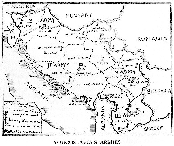 Owing to her geographical situation, it is impossible for Yugoslavia to man the whole length of her frontiers as in time of war. The strategy of the Higher Command is based on the retention of certain commanding positions.