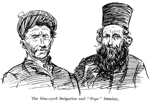 Even the Abbot, Father Damien, could not "avoid it," and was thrashed and hurled into prison for sheltering pilgrims whom the Turks swore were insurgents. He had not long been released, and his arms showed the marks of the blows, and his face the trace of a long cut. It can only be a hereditary hardiness to this treatment that keeps them alive, for it has also been "a part of the lives" of their ancestors for generations. It is no easy thing to be a Christian in Macedonia, and surely the Faith can have no light hold on them when they will suffer thus for it. It makes one