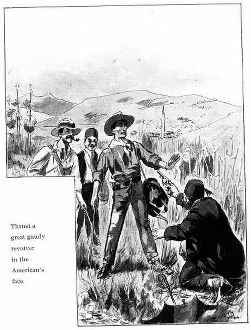 the "cut" as the stout body lurched on to its knees, and thrust a great gaudy revolver into the American's face. Luckily he did not "pull his gun" in return or the subsequent row would have raised the country against us; and whatever our aspirations, fighting our way through Turkey was not one of them. Moro held out his hand, gently chiding the stranger for his brusqueness, whilst the face behind the firearm gurgled "Teskari."
