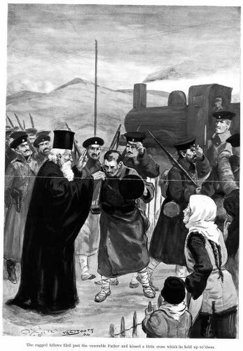 Naturally the soldiers were confident, and from what we afterwards saw of them and their organization I think they had good reason to be so. The whole population (with the possible exception of the merchants) was rampant for war. The doings of their Moslem neighbours over the border - the slaughterings and burnings - were nothing new; their own fathers had known that life, and the deep, inborn hate was always there. But Free Bulgaria has grown astoundingly and developed its muscles, and now it saw a chance of hitting back hard enough to hurt. The army went about its business quietly and with a good deal of secrecy. A Regiment of Reserves marched to a siding on the line before dawn the morning after our arrival. An old Exarchate "pope" (as their holy men are called) was waked and bidden to come and bless the troops. The rugged fellows filed past the venerable Father and kissed a little cross which he held up to them. Rough and untaught as they were, they knew it was the symbol of what they were going out for, and a tear stood in some of