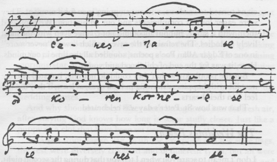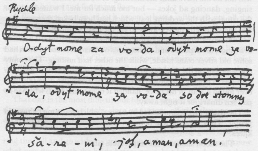 There was singing all the time and I wanted to write down the notes of the song. It wasn't easy, not only because writing notes was always difficult, but because the songs, even though they were old, were full of life and their details were gradually changing.