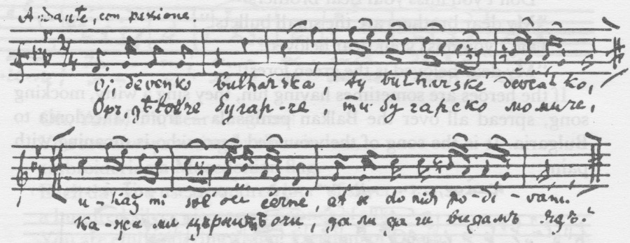 *. See "Macedonian Songs", for singing and piano, with full original texts and Czech translations by Jan Houdets (book XIV "Slavdom in my songs"). Author's note.