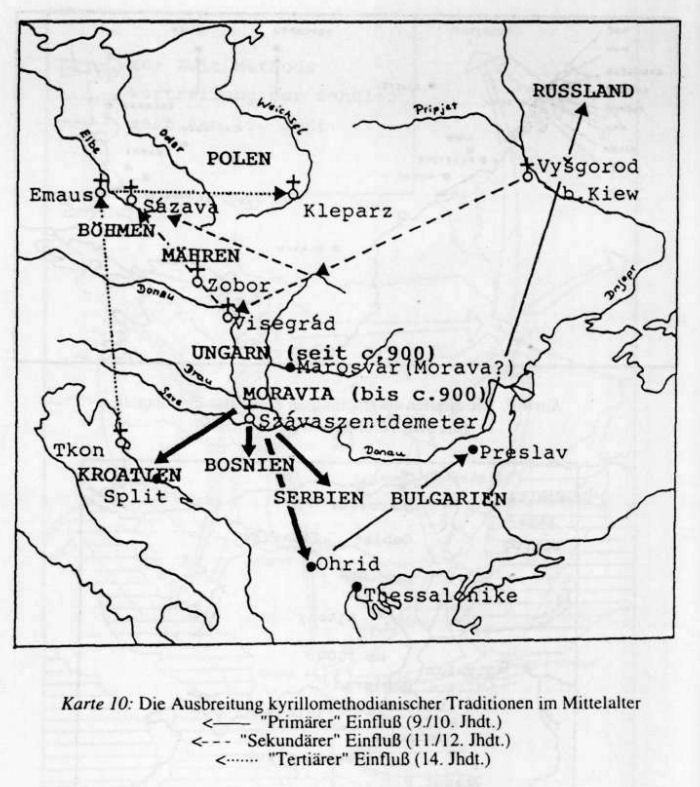 Karte 10: Die Ausbreitung kyrillomethodianischer Traditionen im Mittelalter