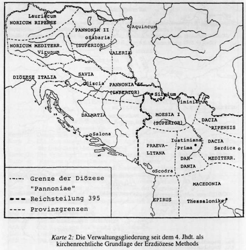 Karte 2: Die Verwaltungsgliederung seit dem 4. Jhdt. als kirchenrechtliche Grundlage der Erzdiözese Methods