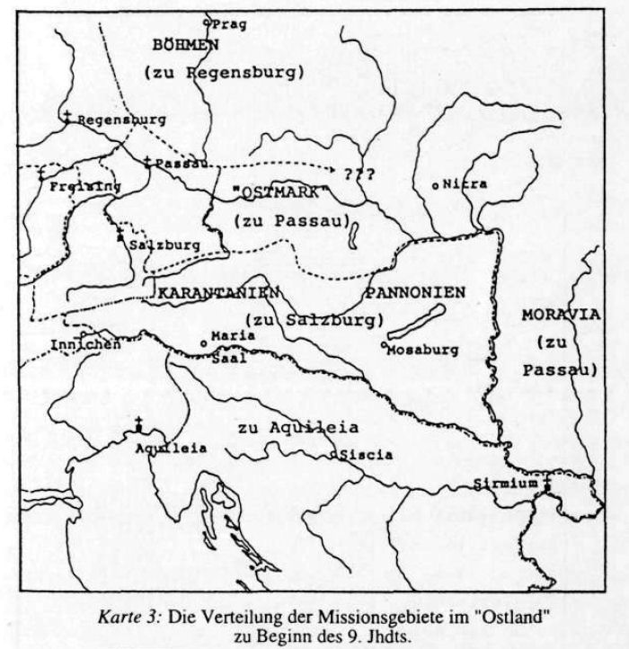 Karte 3: Die Verteilung der Missionsgebiete im "Ostland" zu Beginn des 9. Jhdts.