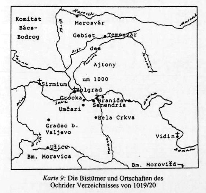 Karte 9: Die Bistümer und Ortschaften des Ochrider Verzeichnisses von 1019/20