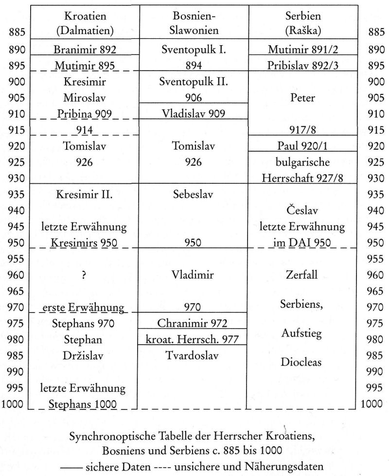 Im Süden hatte Sventopulk II. die Bedrängnisse seines Bruders offenbar genutzt; vielleicht schon durch den Frieden Moimirs mit den Ostfranken (901), vielleicht aber auch erst nach dem Untergang Moravias errang er, folgt man der Herrscherliste des «Presbyter Diocleas», neuerlich die Regierung im väterlichen bosnisch-sla-wonischen Fürstentum und hatte sie bis 906 inné. Die Nachkommen Sventopulks I. stellten hier noch für mehrere Generationen die Herrscher, so daß einzig das Bosnien des 10. Jahrhunderts - wenn schon nicht in territorialer, so doch in dynastischer Hinsicht - als «Nachfolgestaat» Moravias gelten könnte [5].