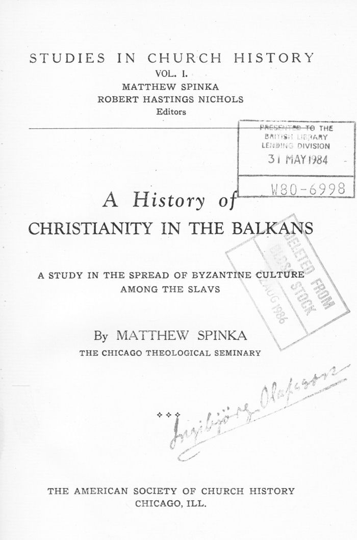 A History of Christianity in the Balkans A study in the spread of Byzantine culture among the Slavs