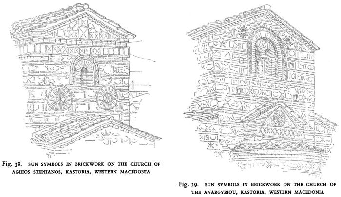 Farther inland, among the mountainous ranges of the north and west, a different situation developed. In these wilder regions, even in the towns, Hellénisation had never been complete. Greek influence, while paramount and a strong civilising force, had had to contend with constantly shifting tribal populations and with cultural allegiances from beyond the Macedonian frontiers. These were principally Illyrian on the west and north and Thracian on the east. The lack of Illyrian or Thracian literature makes any estimate of their cultural contributions extremely difficult, but it was certainly far from negative. Scymnus of Chios, writing about a century before the beginning of the Christian era, calls the Illyrians ‘ a religious people, just and kind to strangers, loving to be liberal, and desiring to live orderly and soberly’. Other contemporary Greek or Roman historians are less complimentary, or more biased. One point upon which there is no doubt is that women were accorded an exceptionally favourable status in Illyrian society ; a queen, Teuta, was one of the principal leaders of Illyrian resistance against the Romans. While the historians unfortunately leave us in ignorance of the nature of the religion of the Illyrians, other evidence, including traditional tattoo markings in the more primitive parts of Albania, suggests a strong cult of sun and moon worship. [2] Certainly later, during the first two or three centuries of the Christian era, Mithraism exerted an exceptionally powerful appeal in Illyrian areas.