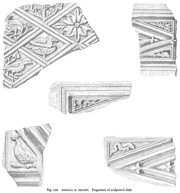 Fig. 100. BASILICA B, PHILIPPl. Fragments of sculptured slabs