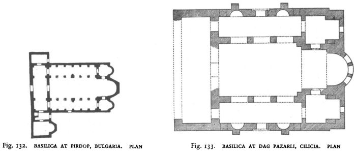 A centralised circular or octagonal church roofed with a dome was by no means uncommon in the sixth century. Originally evolved in Asia, the architectural form had been adopted by Rome in pagan times. In the Christian West the round form tended to serve the purpose of a mausoleum or martyrium, as in Sta Costanza, Rome, while the octagon became the popular form for a baptistery as, for instance, in Ravenna. In Thessalonica, Galerius’s Rotunda, probably erected to be his mausoleum, was converted into a splendid church towards the end of the fourth century. In Syria the development of this centralised type of church for congregational purposes, as a rule probably in association with the cult of a martyr, appears to have been particularly strong. It was the form of St John the Baptist’s at Gerasa, the churches at Beisan and Madaba, of St George at Ezra and the Episcopal Church at Bosra. In the two last, both built during the second decade of the sixth century with parabemata, as was the case at Konjuh, the aisle virtually enclosed the nave. However, the bema and parabemata were appended, rather as annexes; they did not perform a structurally essential task in relation to the rest of the building.