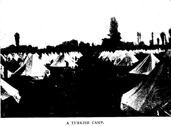 been primed up with the horrors of Turkey in the neighbouring countries. The ignorance displayed by the inhabitants of Sofia or Belgrade is most annoying to the unsophisticated stranger. The writer himself was delayed four days at Belgrade because he was told at the Foreign Office that the passenger service in Macedonia was suspended owing to the railway having been blown up in several places. Other correspondents left their cameras, maps, and other necessaries carefully behind, because they had been primed that all such articles would assuredly be confiscated on the Turkish border. In reality, only certain books and arms of any kind are ruthlessly confiscated; and this reminds me of a certain jovial colleague of Irish descent who took with him, to beguile the weary journey, a book on the downfall of Turkey in Europe, with an appropriate picture on the cover. It very nearly led to his arrest and summary expulsion; but in this case there was certainly something to be said for the Turkish side.