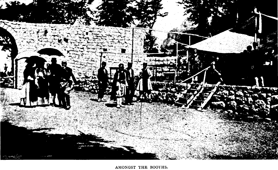 IT is evening. The slopes of Ostrog resemble the tented camp of a mediaeval army as the flickering lamps of oil flash on silver corslets and bejewelled sword-hilts thrust in gay sashes. I see men in enormous red turbans - long drooping moustaches lending a ferocity to their sun-burned faces - jostling other giants in fez or little round cap as they go to and fro in the tents. Wild Turkish music mingles with a monotonous chant, to which a ring of men are solemnly dancing, and on the highest tier of tents a group is watching a pair of dancers who are vying with each other in the agility of their leaps. A hum of humanity ascends to the starlit heaven, punctuated by short, sharp yells and the hails of one who has lost his friend in the press and is calling him by name.